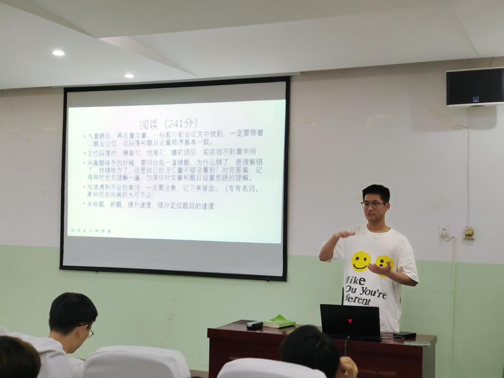 本次活动邀请了员工党员夏国轩、董博,员工代表焦国祥三位学长,他们英语四级成绩均以500分以上的高分通过,交流会上,三位学长分别从英语四级考试流程、题型、答题技巧、词汇记忆方法等方面进行了经验分享和交流,并现场解答了大家的问题。