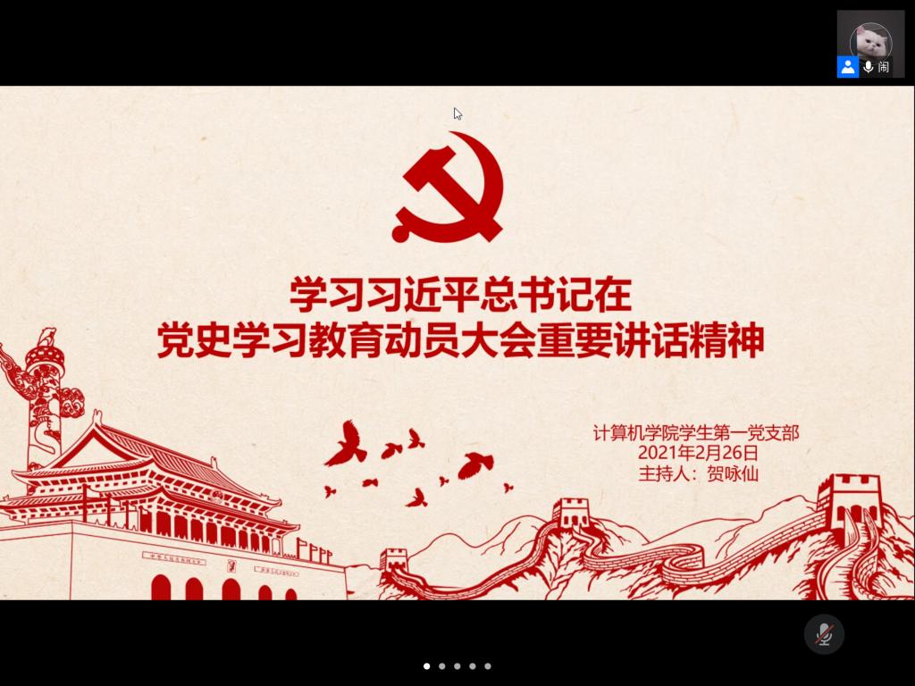 为了更好地学习党史,bevictor韦德国际员工第一党支部于2月26日晚上7点在线上开展了学习习近平总书记在党史学习教育动员大会上的重要讲话精神。本次学习由员工第一党支部员工党员贺咏仙主持,员工第一党支部所有党员、预备党员和积极分子参会。