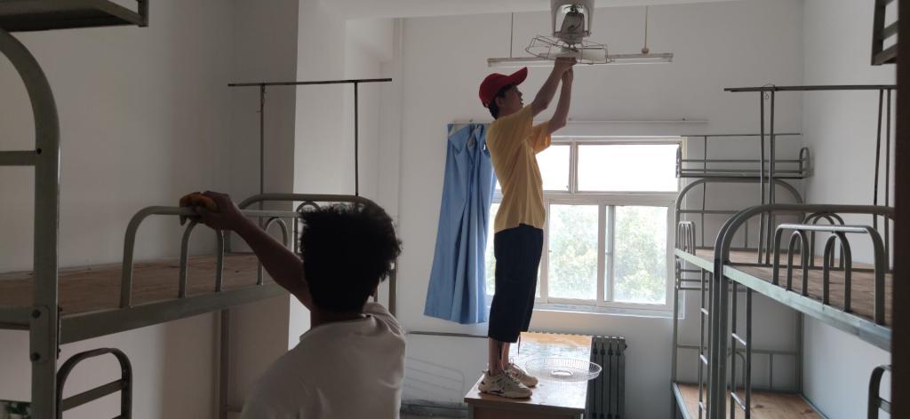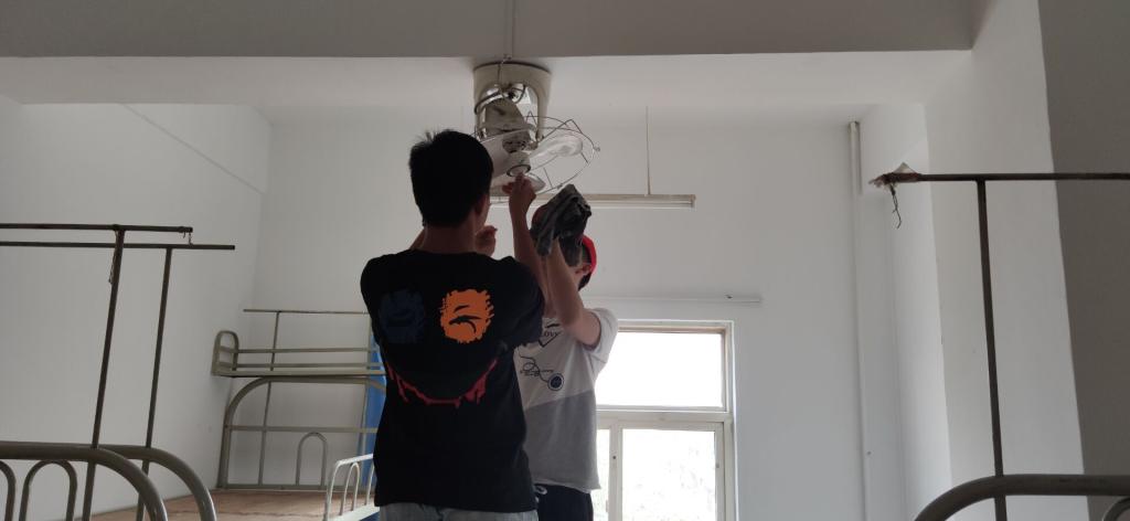 活动现场,员工党员们有序领取劳动工具,分工明确,积极投身到卫生打扫工作中。在擦拭桌椅床铺、清洗电扇电灯等任务开展过程中,党员们相互配合,同心协力,任劳任怨,没有留下任何一个死角。经过清扫工作后,新生宿舍焕然一新。