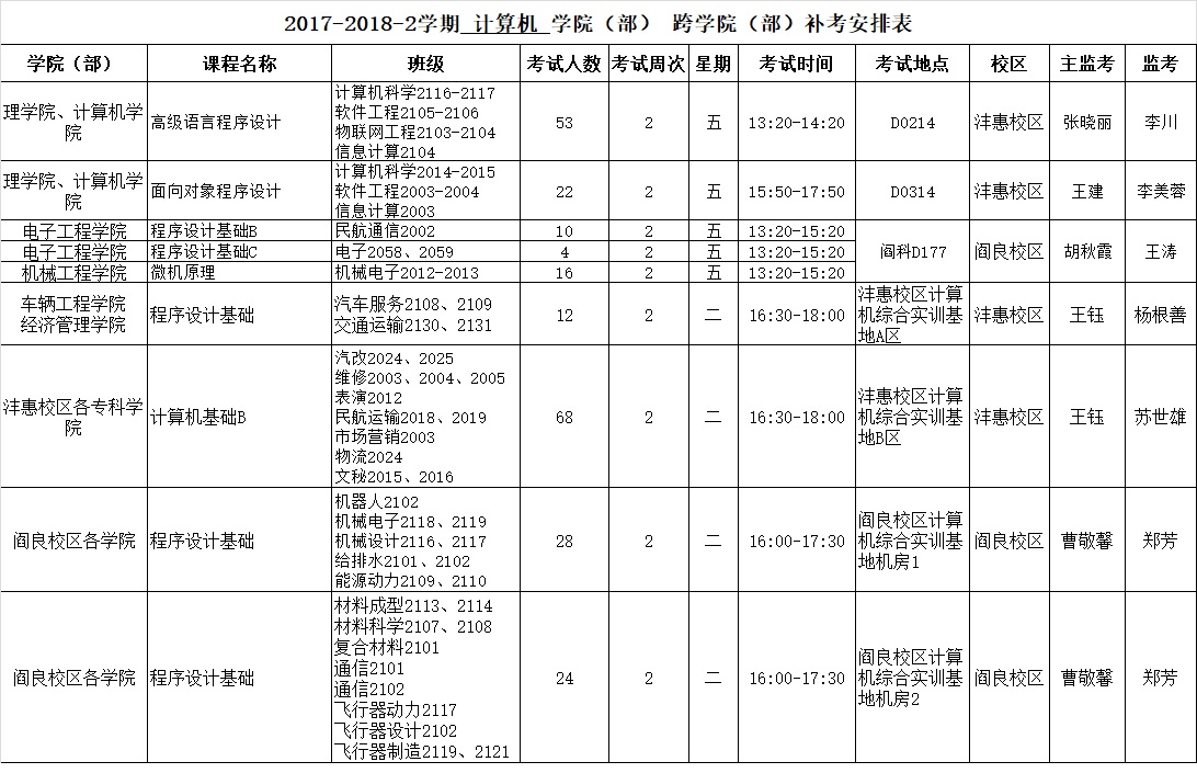 ​bevictor韦德国际2017-2018-2学期跨公司补考安排表