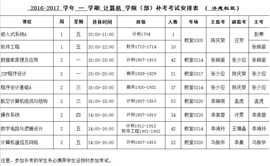 2016-2017-2学期​bevictor韦德国际补考安排表
