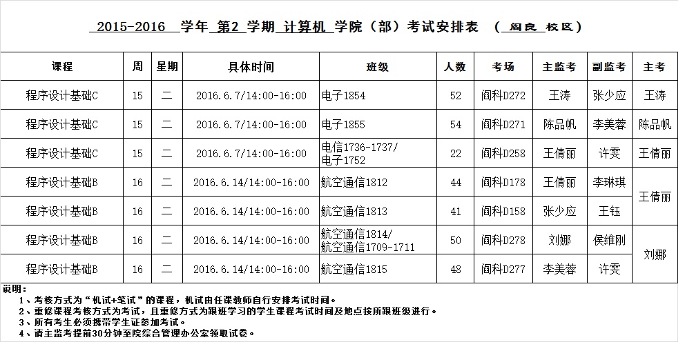 ​bevictor韦德国际2015-2016-2学期考试安排(阎良校区)