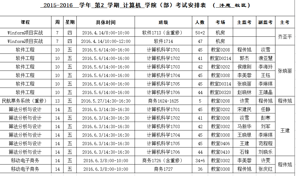​bevictor韦德国际2015-2016-2学期考试安排表(14周之前)