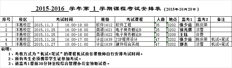 ​bevictor韦德国际2015-2016-1学期考试安排(一)