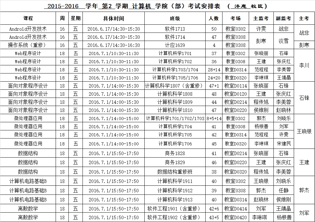 ​bevictor韦德国际2015-2016-2学期考试安排(14周之后)
