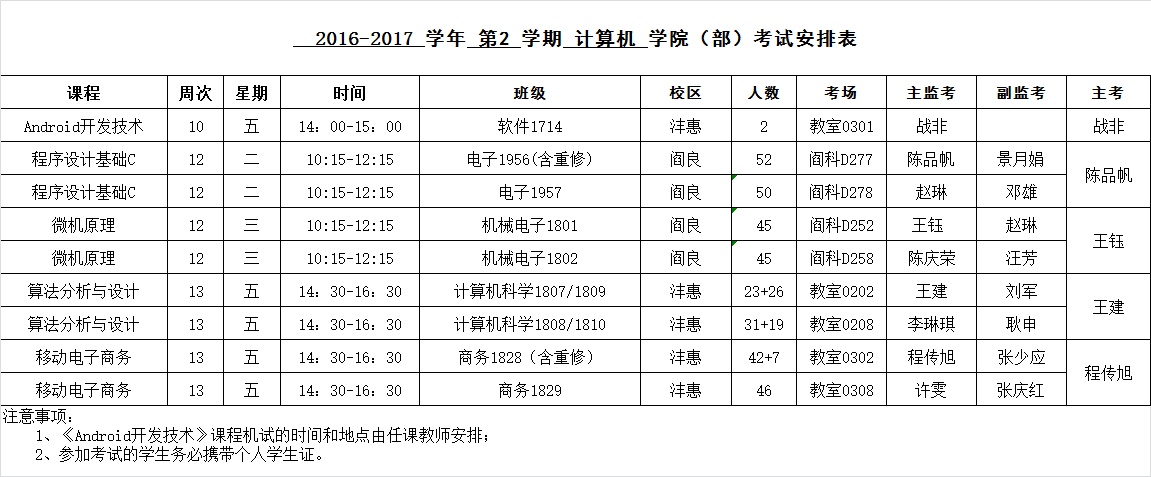 ​bevictor韦德国际2016-2017-2学期考试安排(14周之前)