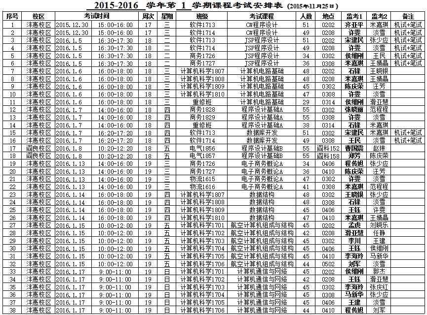 ​bevictor韦德国际2015-2016-1学期期末考试安排表(14周之后)
