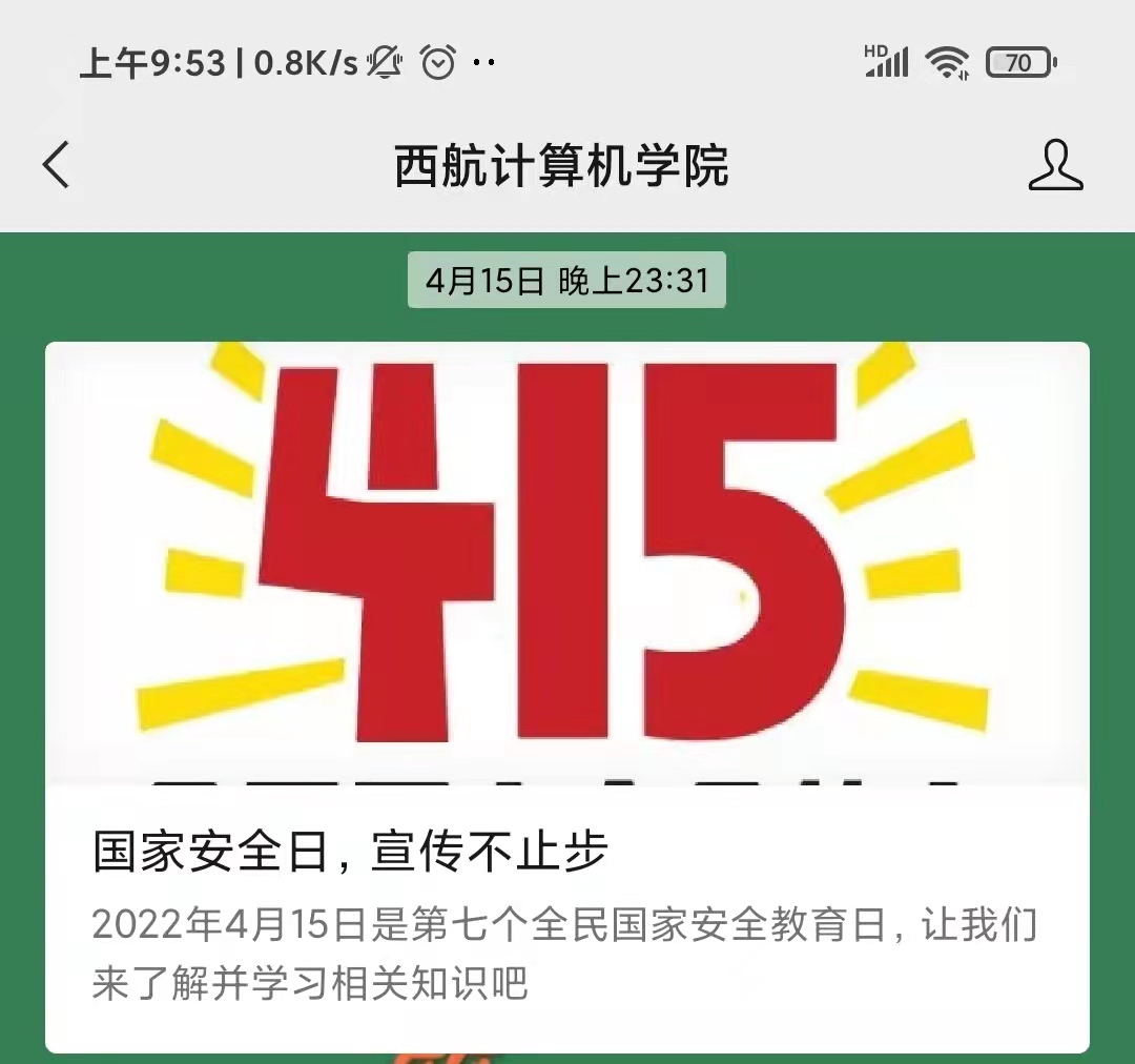 此前,公司党总支已通过微信公众号等推送了多期国家安全法律法规基本知识和新时代国家安全取得的成就等内容,有针对性地做好国家安全宣传工作。接下来,还将组织师生积极参与“全民国家安全教育日专项答题”等线上宣传教育活动,有效引导师生爱国、励志、求真、力行,切实筑牢总体国家安全观。