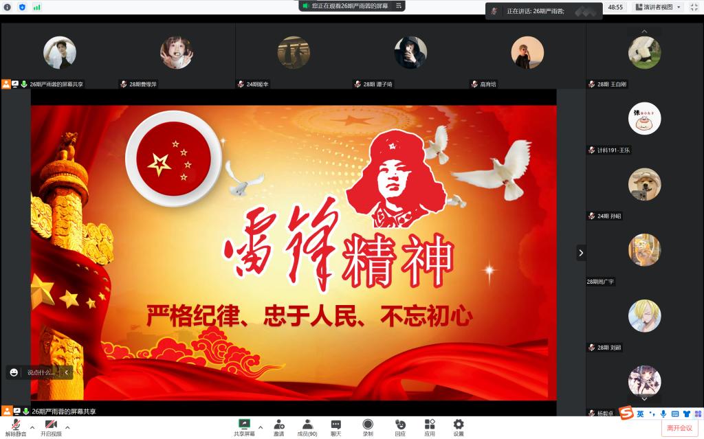 首先,缪佳玉带领着大家走进雷锋,重温了雷锋同志的感人事迹。严雨蓉引领第二党支部全体党员、积极分子深入学习了雷锋精神,观看了《当雷锋日记续写到2023年》等相关视频,使大家感受到信念的能量、大爱的胸怀、忘我的精神和进取的锐气,正是中华民族精神的写照。
