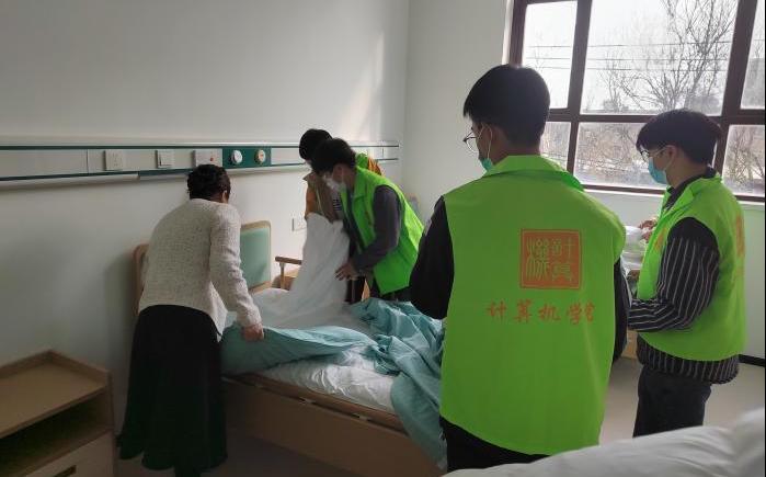 当天下午,志愿者们满怀真诚和爱心走进敬老院,与爷爷奶奶们展开亲切的交流,聊近况、话家常。随后,志愿者们为爷爷奶奶们献上准备的节目,歌唱《我和我的祖国》、《最亲的人》等,并带来精彩的传统戏剧秦腔表演,以及学习普及包扎知识……活动现场气氛热烈,爷爷奶奶们脸上都洋溢着开心的笑容。最后,志愿者们协助工作人员整理房间、打扫卫生,用实际行动体现敬老爱老的传统美德。
