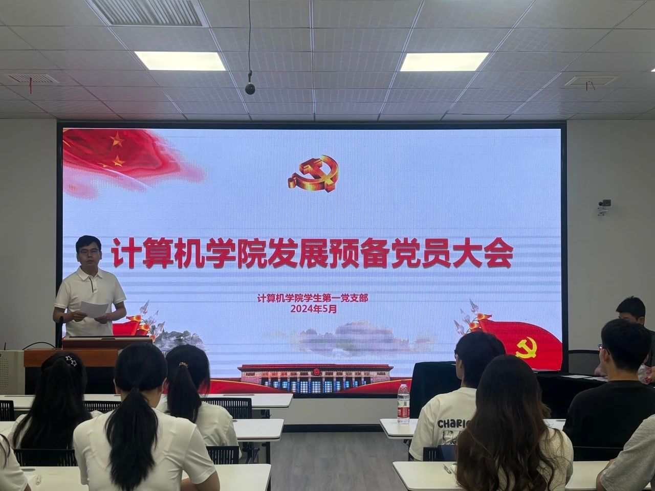 大会在庄严肃穆的国歌声中拉开序幕。首先,王胜茂等24名发展对象进行答辩。他们分别从思想、学习和生活等方面汇报了个人一年来的表现、目前存在的不足和今后的努力方向。随后,在场正式党员宣读了培养人意见以及政审报告,对发展对象的政治表现、道德品质、学习能力、工作能力等方面进行了全面评价。