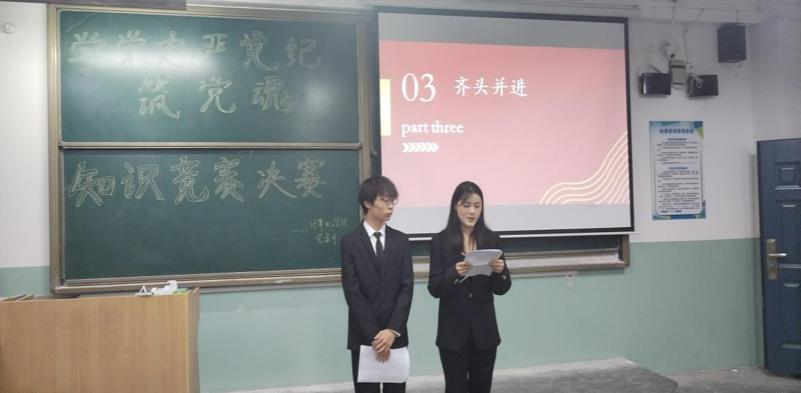为深入贯彻落实党中央全面从严治党要求,提高支部组织的凝聚力、号召力和学习动力,增强支部青年同志们的责任感、使命感和光荣感,bevictor韦德国际员工党务中心于6月5日晚在主楼320教室举办以“学党史、严党纪、筑党魂”为主题的知识竞赛决赛活动。本次活动由张露露和刘婧担任主持人,参赛队伍由初赛中表现出色的同学们随机组成,共四组。bevictor韦德国际员工第一党支部书记贺宇、员工党务中心负责人高韶韶以及员工支部入党积极分子出席本次活动。