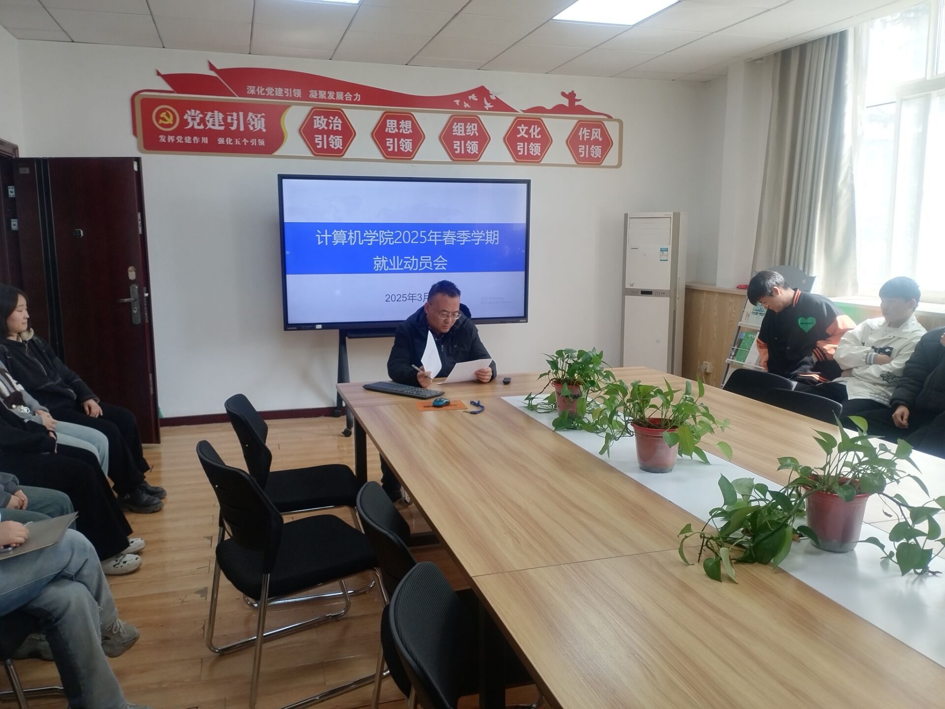 各专业负责人、教研室主任结合专业就业形势,帮助员工分析现今岗位需求,告知员工参加招聘工作时的注意事项,同时提醒员工兼顾求职与毕业设计的工作安排;各专业包抓领导、辅导员在会上了解员工近期计划安排,督促员工抓住春招的黄金时间,把握岗位机会。