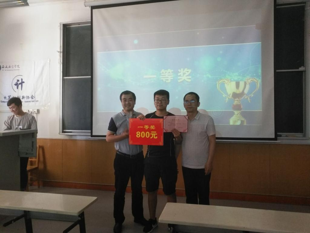 比赛评委由石峰老师和计算机创新协会各部门干部担任并设定了严格的评分标准,结果现场公布,确保“公平、公正、公开”。经过激烈竞争,比赛的冠军由软件1902班权超同学获得,亚军、季军分别由计科2014班丁晓哲和计科1913班杨新月获得,公司党总支书记刘晋云为获奖选手颁发了荣誉证书。